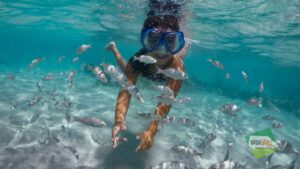 Praia de Maracajaú com infraestrutura, embarcação Catamarã, óculos, Snorkel, coletes de flutuação e taxas ambientais.